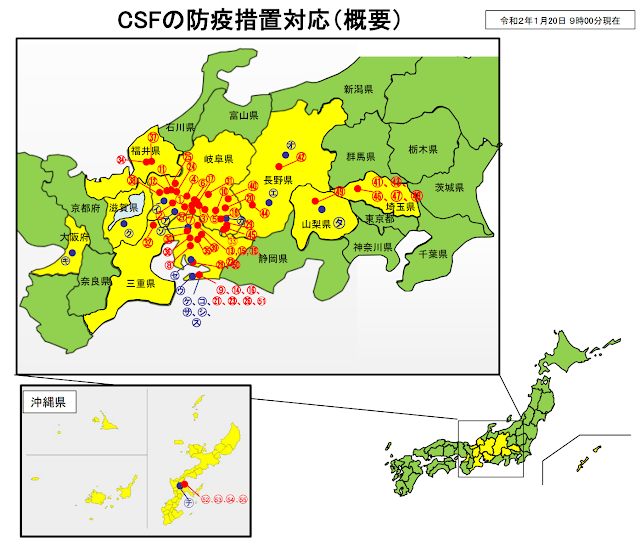 It is not noticeable because it is only news about Wuhan virus, but since last year in Japan CSF is also a serious problem. This infectious disease of pigs and wild boars occurred in Japan in September 2018, and OIE has temporarily suspended Japan's Disease Free Status of Member Countries. The hold deadline is the 3rd of this month. As a result, Japan's Disease Free Status of Member Countries has been lost. In order to return, it is a condition that there is no CSF outbreak for a year, and that pigs have not been vaccinated in general.