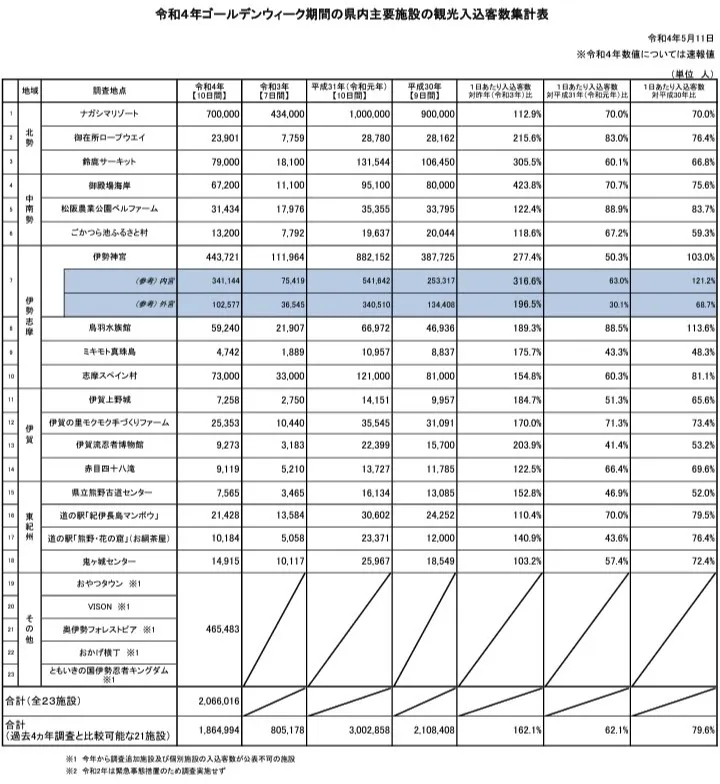【ゴールデンウィークの伊勢神宮参拝者数】Number of worshipers at Ise Jingu during the golden week