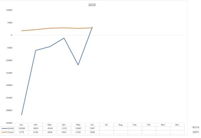 Incidentally, the total current account balance was a surplus for the first six months of the calendar year was 8013.2 billion JPY. Trade balance of goods is a deficit of 5178.8 billion JPY. Travel balance was a surplus of 1616.1 billion JPY. Although the overall service balance is a deficit of 2122 billion JPY.