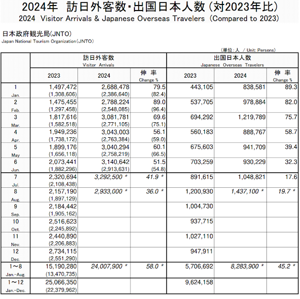 インバウンドは例年、暑い夏季の8月と9月に減少するが、今年は8月中旬の南海トラフ地震の誤報や下旬の台風接近の影響で更に減少したようである。